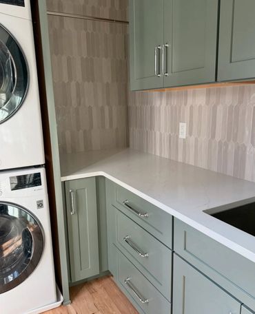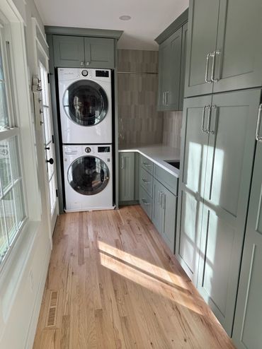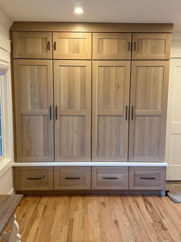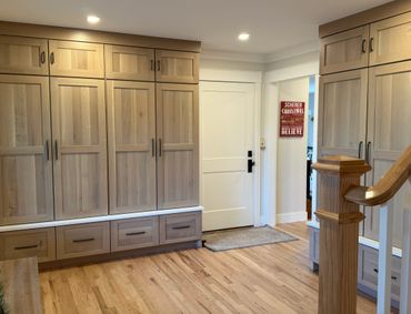 Closed cabinets in a mudroom help keep the space looking clean and organized by hiding clutter like shoes, jackets, and bags. They also protect items from dust and dirt, especially since mudrooms often deal with wet or muddy gear.