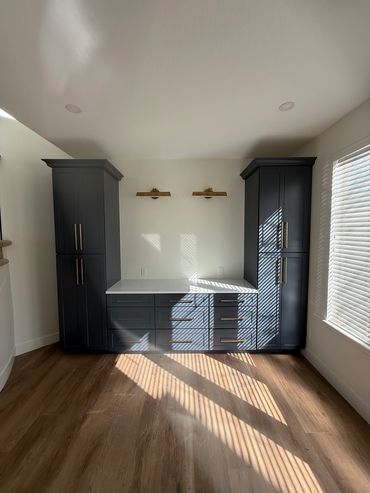 A built-in library in your home office maximizes space and enhances organization by offering custom cabinetry for books, documents, and decor, keeping the area neat and functional. It also adds aesthetic appeal, creating an elegant and personalized workspace that boosts productivity and provides a cozy retreat for reading or relaxation.