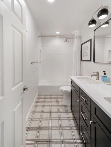 The Russet Sky Trail project features thoughtful lighting, unique tile selections, and accents that create a bright, clean, and welcoming feel.